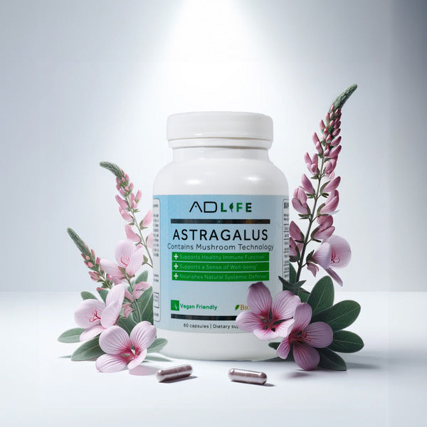 Astragulus is an intriguing one. Traditionally used in Chinese Medicine, it has gained traction in the Western world in recent years due to some incredibly comprehensive studies showing its potency for treating kidney disorders. In addition to promoting kidney health, it seems to show promise in shielding the body and defending it against various illnesses and ailments, possibly by boosting the immune system. It's a fantastic formula for promoting overall wellness in numerous capacities and a great addition to the AD LIFE range.