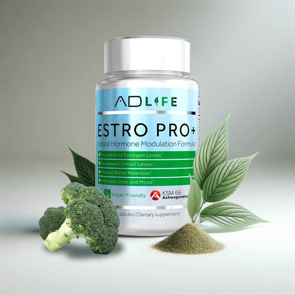ProjectAD has developed a potent proprietary natural formula to help eradicate excess estrogen, improve natural testosterone production, and promote positive hormone balance in the body. Our formula uses Diindolylmethane (DIM), Calcium D-Glucarate, Indole-3-Carbinol, Chrysin, KSM-66, and many more synergistic compounds to achieve what previously has only been possible by prescription medications. Ingredients in Estro-Pro+ have been shown to be effective in preventing estrogen production and absorption.